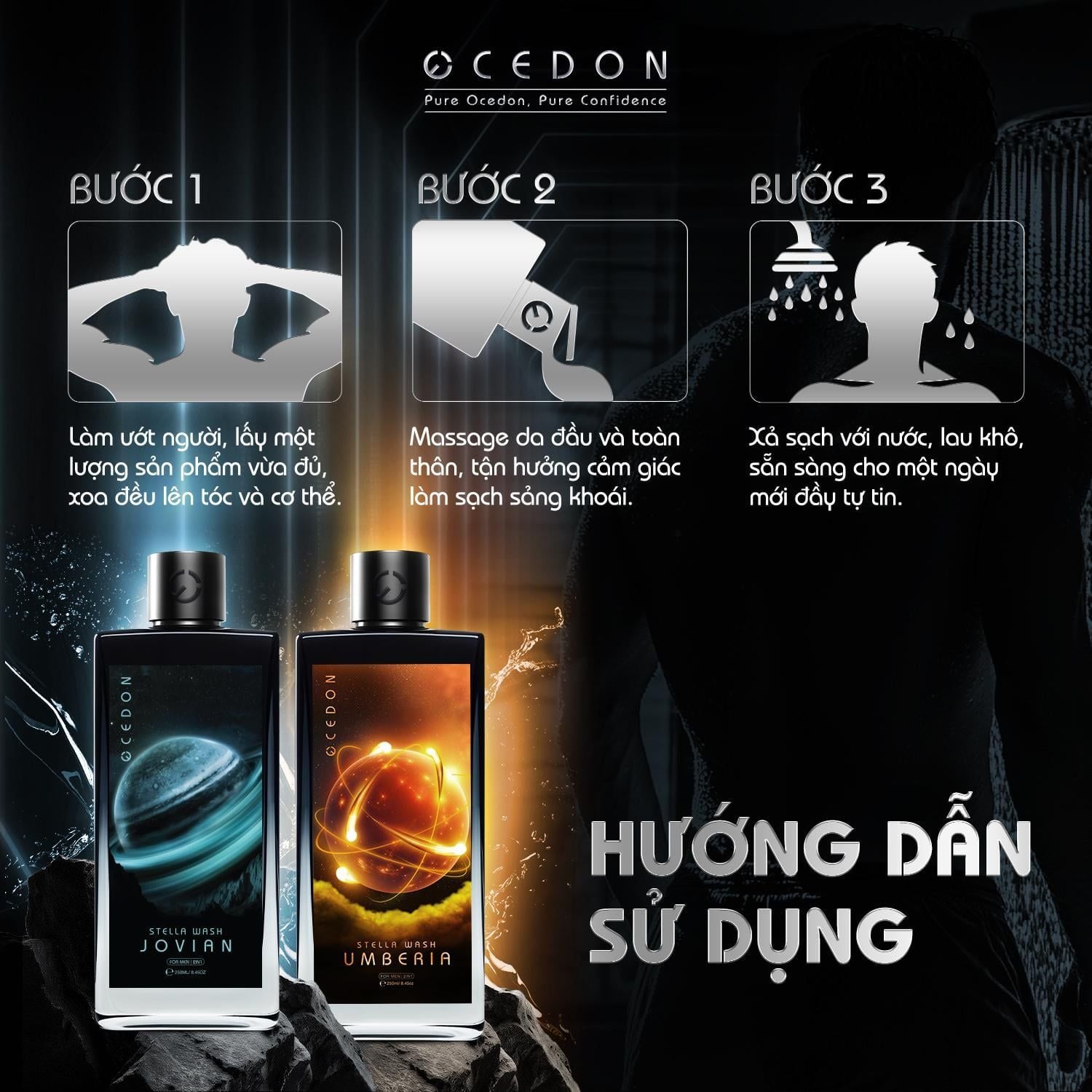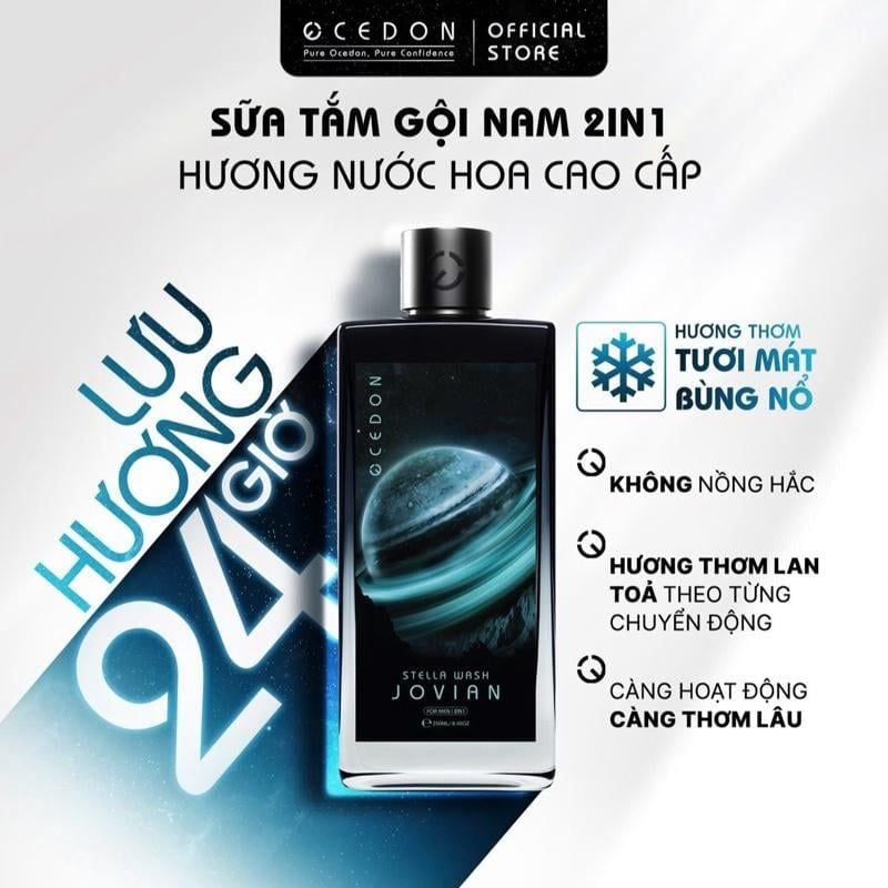 Dầu gội ngừa gàu hương nước hoa nam Ocedon Stella Wash 2in1 - Hộp 250ml